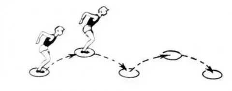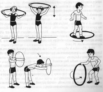 Основные виды движений. 1. Прыжки из обруча в обруч. (5-6 обручей) на двух ногах, 3-4 раза.